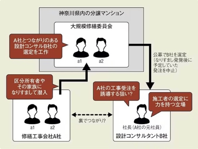 • 神奈川県のマンションで、工事会社の社員2人が住民になりすまし、大規模修繕委員会に参加。